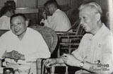 1938年,葉挺(右一)在漢口為新四軍籌款、籌槍,中間為郭沫若。