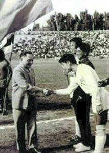 同年,南斯拉夫足球隊(duì)在獲得了奧運(yùn)會(huì)冠軍后,來中國(guó)訪問比賽。中國(guó)足球隊(duì)其時(shí)剛從匈牙利“上學(xué)”歸來不久,自然不是奧運(yùn)會(huì)冠軍南斯拉夫足球隊(duì)的對(duì)手,結(jié)果輸?shù)煤軕K。但賽后,毛主席卻熱情地接見了南斯拉夫隊(duì),并發(fā)出了一個(gè)關(guān)于中國(guó)足球的預(yù)言:“我們今天輸給你們,明天輸給你們,但13年之后要贏你們!”