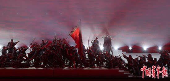 6月28日,北京國家體育場,慶祝中國共產黨成立100周年文藝演出《偉大征程》現場,戲劇與舞蹈《長征》。中青報·中青網記者 陳劍/攝