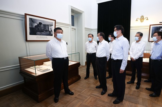 6 月25 日,中共中央政治局就用好紅色資源、賡續紅色血脈舉行第三十一次集體學習。這次集體學習采取參觀和討論相結合的形式,這是習近平、李克強、栗戰書、汪洋、王滬寧、趙樂際、韓正等在中南海豐澤園參觀毛澤東同志故居 鞠鵬攝/ 本刊