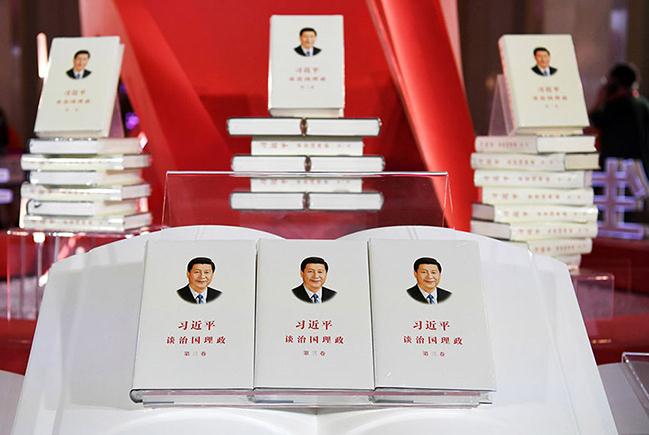習(xí)近平新時(shí)代中國(guó)特色社會(huì)主義思想是當(dāng)代中國(guó)馬克思主義、二十一世紀(jì)馬克思主義,是中華文化和中國(guó)精神的時(shí)代精華,實(shí)現(xiàn)了馬克思主義中國(guó)化新的飛躍。圖為《習(xí)近平談治國(guó)理政》第三卷在上海書(shū)展展出。