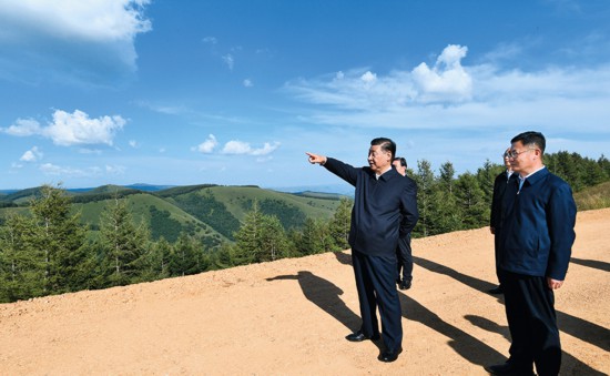 這是23日下午,習近平在塞罕壩機械林場月亮山考察 謝環馳攝/本刊