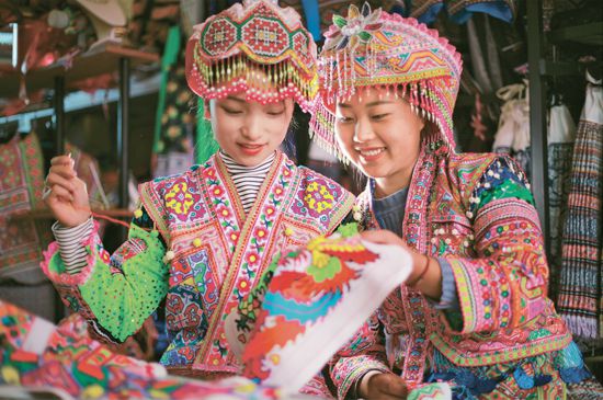 鞏固拓展脫貧攻堅成果是全面推進鄉村振興的底線任務。近年來,貴州省黔西市紅林彝族苗族鄉依托當地豐富的刺繡、蠟染等非物質文化資源,巧用“指尖經濟”助力脫貧、推進鄉村振興。圖為2023年1月6日,苗族婦女在紅林彝族苗族鄉漁塘村“刺繡作坊”里刺繡。 人民圖片 周訓超/攝