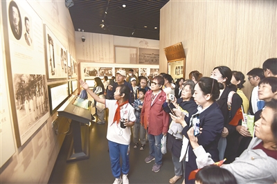 周恩來鄧穎超紀念館深挖館藏資源,推出各類展覽,開展豐富多彩的社教活動。圖為近日,志愿講解員為社會觀眾開展志愿講解服務。 呂小南 攝